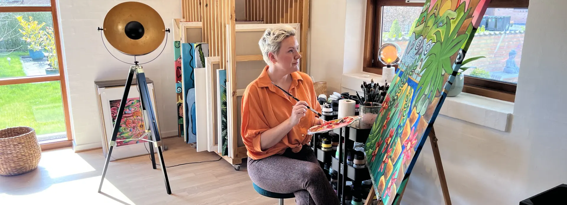 Min kunst er mangfoldig og varieret – og stort set altid i glade farver og med et positivt udtryk.