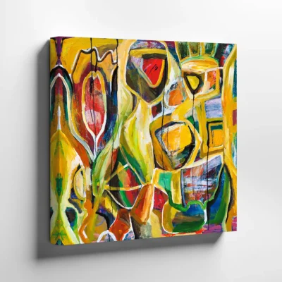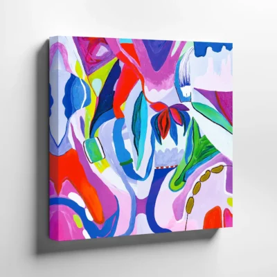 Farverige print på lærred