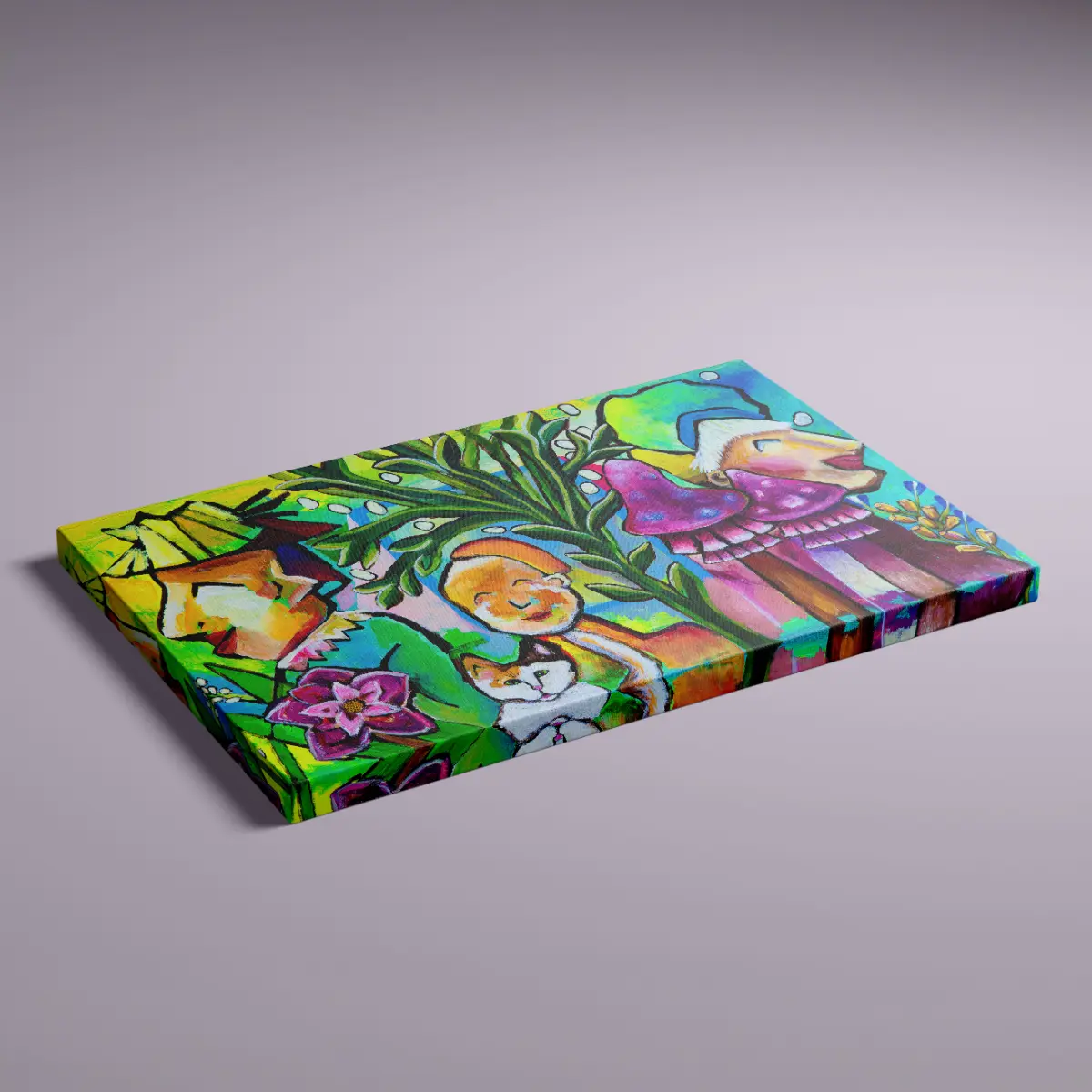 Alice lærredsprint på eksklusivt kunstlærred. Farverig vægkunst med katten Alice, håndspændt på blindramme og med flot 3D effekt.