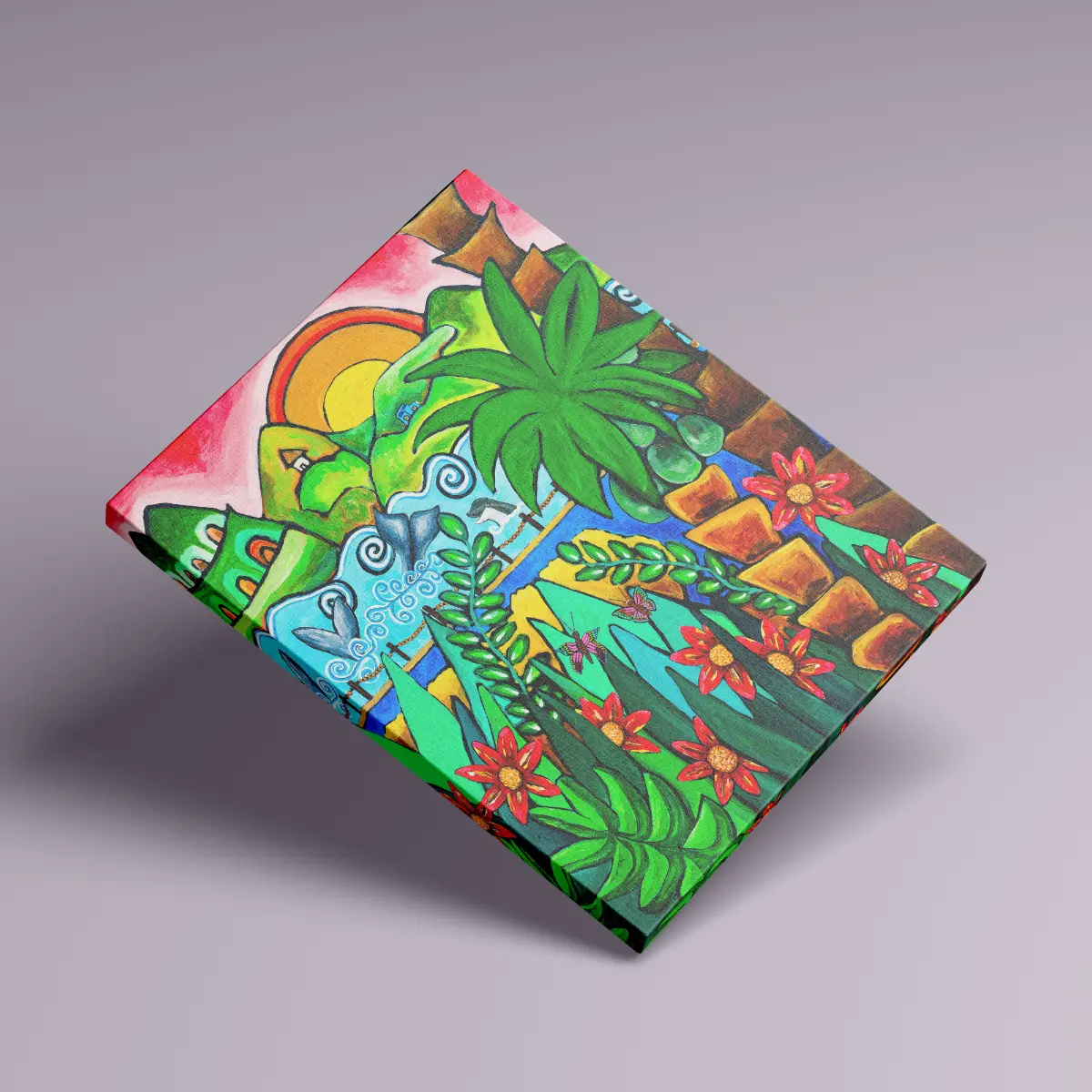 Motivet indfanger følelsen af varme sommerdage ved havet, hvor natur, lys og liv smelter sammen i en harmonisk og fantasifuld komposition.