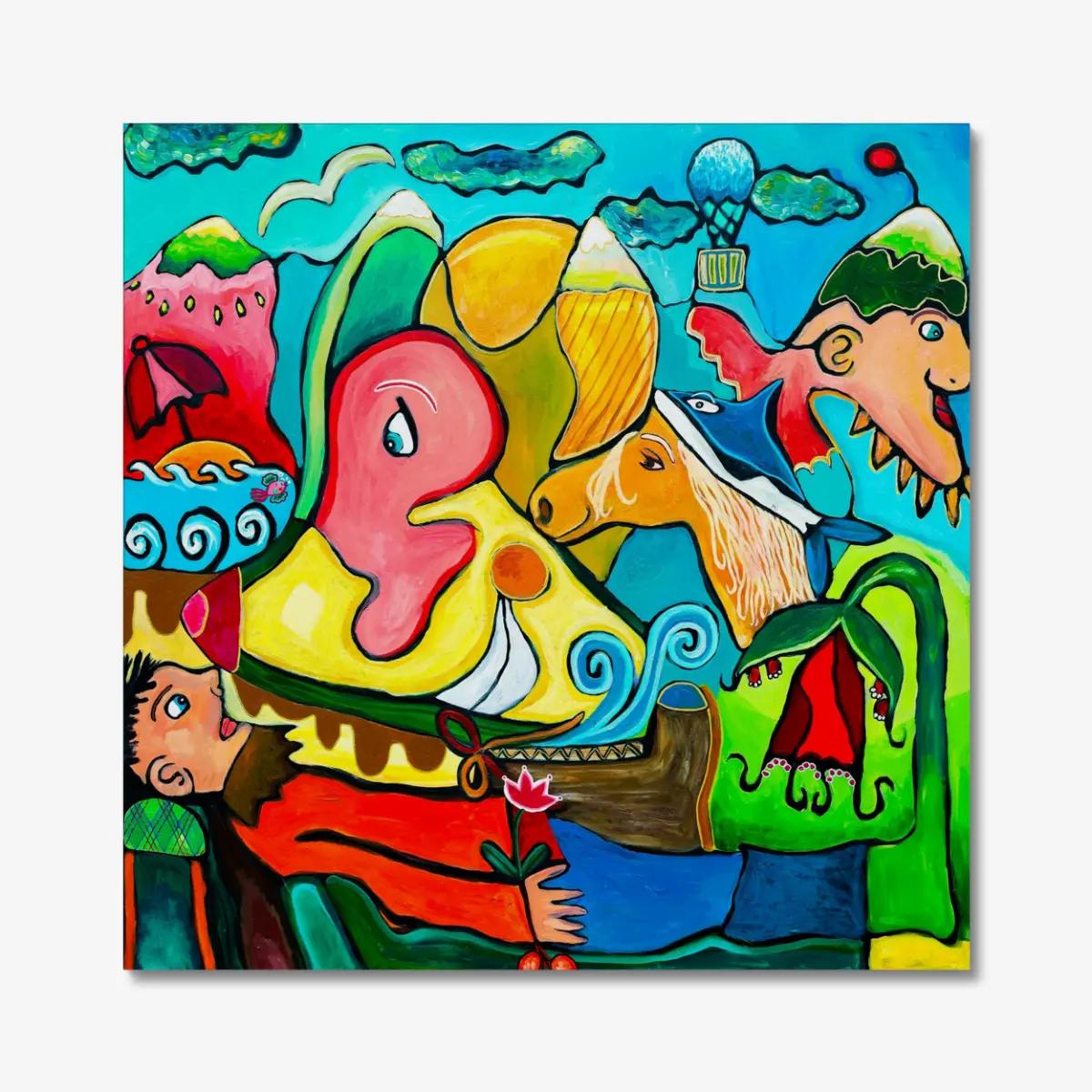 Et unikt lærredsprint, der bringer farve, fantasi og fortælling ind i dit hjem.