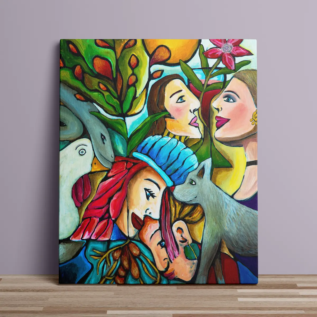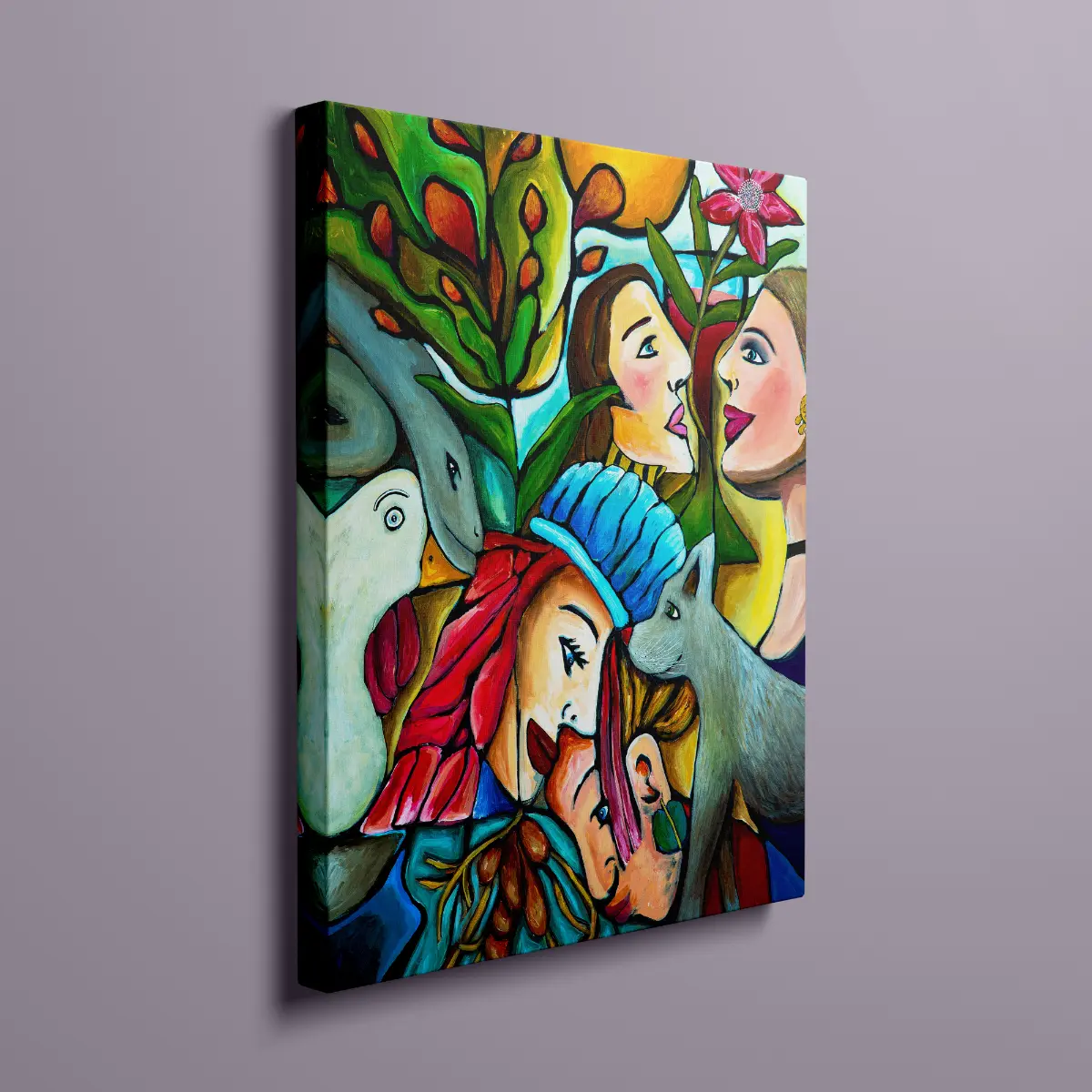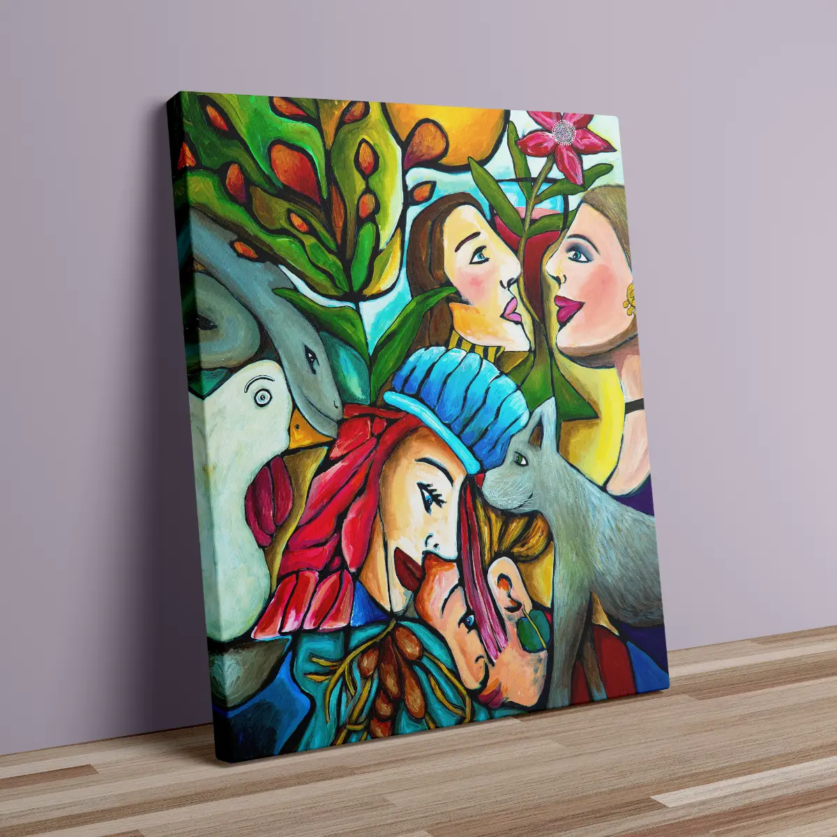 Garden of Eden lærredsprint på eksklusivt kunstlærred. Farverig og sanselig vægkunst, håndspændt på blindramme med flot 3D effekt.