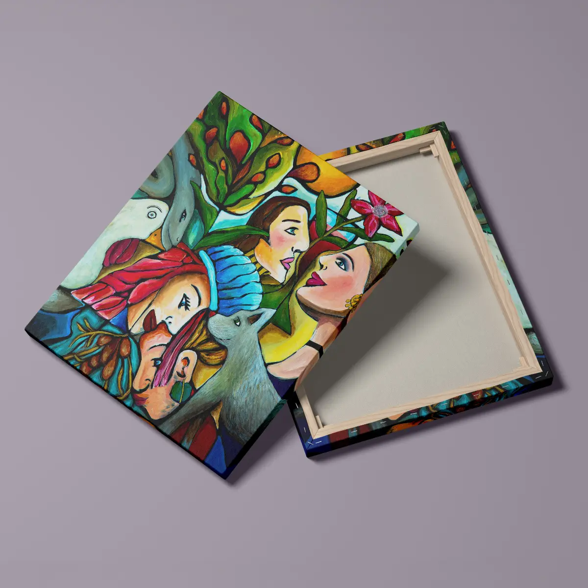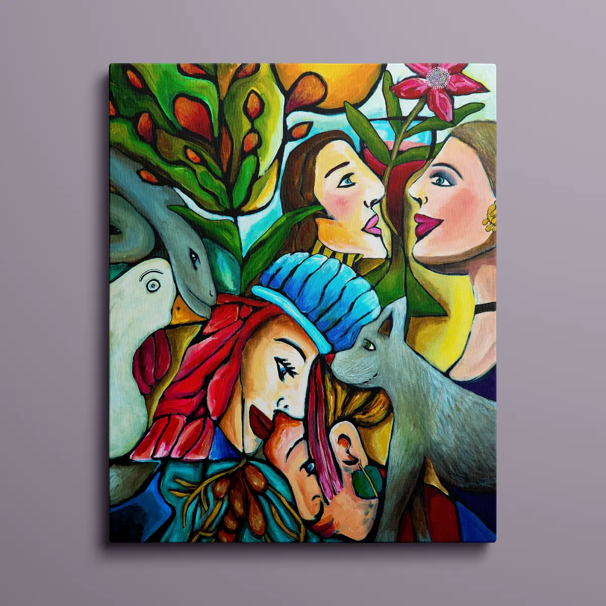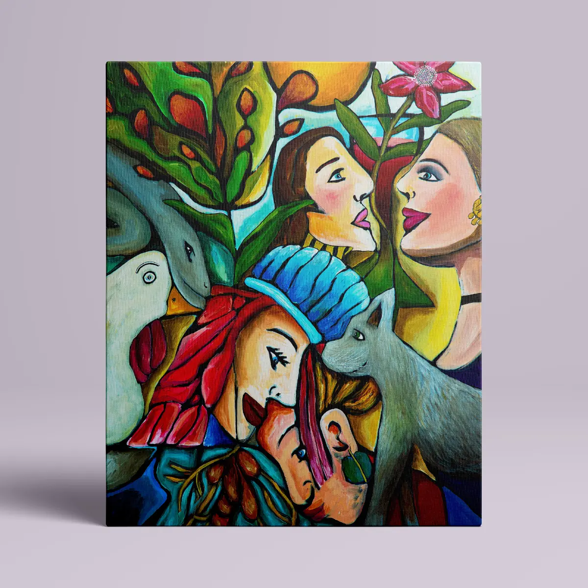 Garden of Eden lærredsprint på eksklusivt kunstlærred. Farverig og sanselig vægkunst, håndspændt på blindramme med flot 3D effekt.